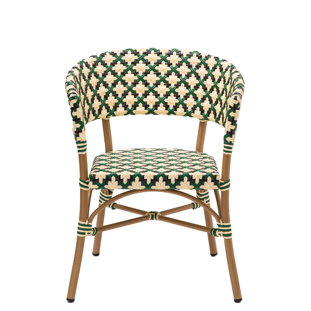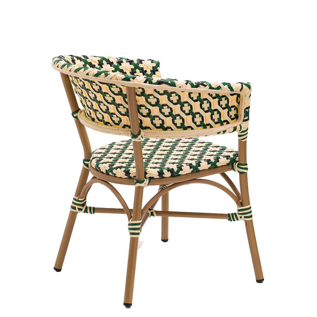 Sillón contract de estilo colonial con el novedoso acabado Luxe en Médula tejida en tres colores que aportará frescura a tu instalación.